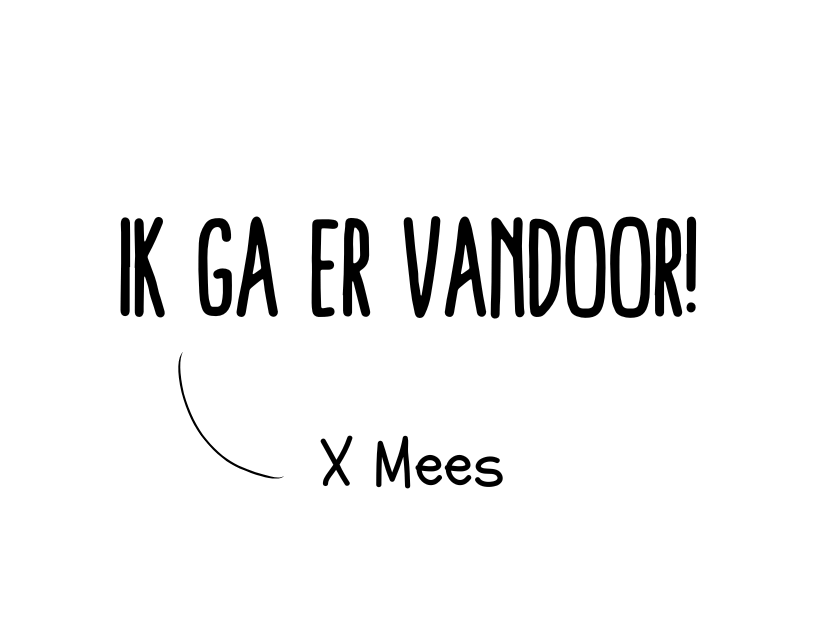 Standaardtekst: De tekst “Ik ga er vandoor!” bovenaan de sticker is vast en kan niet aangepast worden.