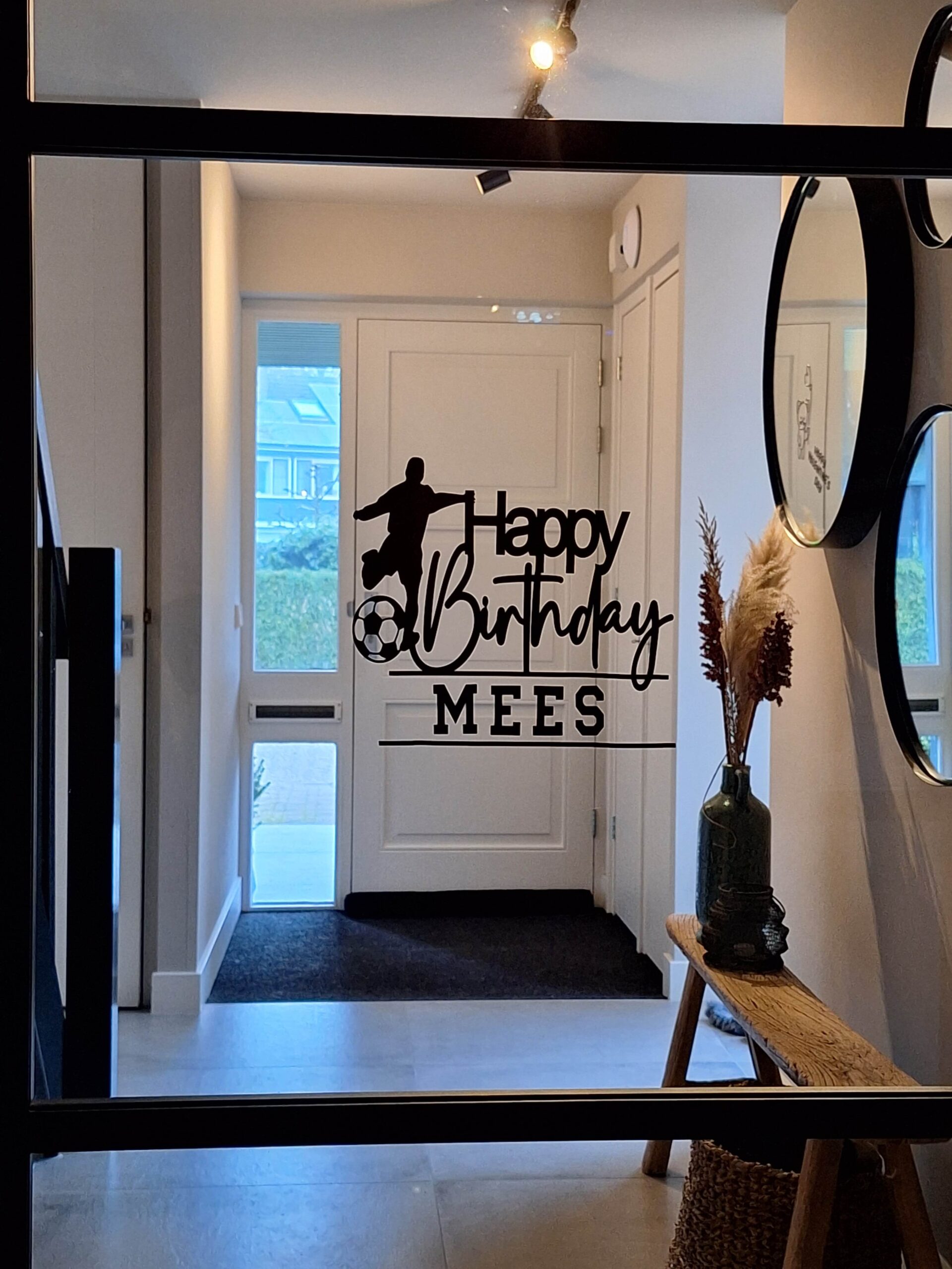Maak elke verjaardag extra speciaal met deze unieke raamsticker verjaardag | Happy Birthday. Het stijlvolle design met een voetbalthema, de tekst “Happy Birthday” en de naam van de jarige maakt elk feest compleet. Perfect voor op ramen, spiegels of glazen deuren – deze gepersonaliseerde decoratie trekt gegarandeerd de aandacht van je gasten!